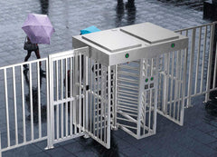 SUN QR402FS is an advanced, full-height turnstile with a waterproof roof, designed for outdoor use. Crafted from stainless steel, the 2.2m x 1.5m turnstile offers customizable features and a self-regulating hydraulic damping device to ensure silent, impact-free operation. Perfect for high secured premises like embassies, stadiums, banks, oil fields, construction sites, and stations.